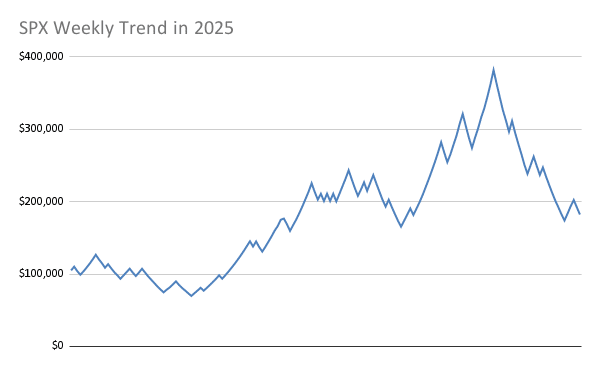 Over a decade of performance across market cycles. The following equity curves illustrate the compounding growth potential of our Weekly Trend strategy, modeled on a $100,000 account. While there are occasional drawdowns and periods of consolidation, the strategy is designed for a consistent edge in SPX weekly options trading. Full trade logs are shown on the Weekly Trend page.